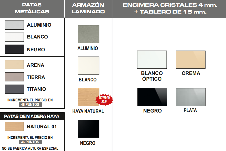 | Color encimera | Tamaño cerrada | Tamaño abierta |